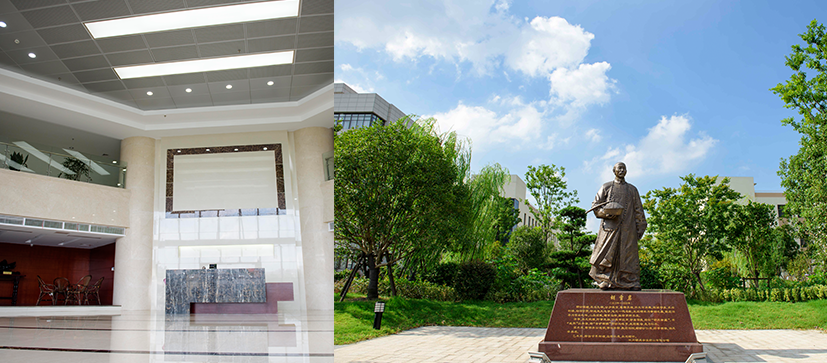 胡雪岩雕像凛然傲立时刻提醒“ 采办务真,修制务精“ 按照国家GMP标准设计的净化车间宽敞明亮的行政大楼